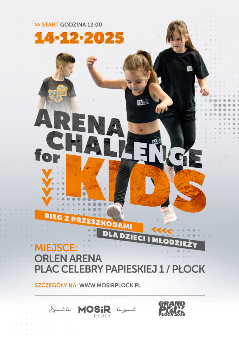 Zapraszamy wszystkie dzieci i młodzież w wieku od 4 do 14 lat na wyjątkowe wydarzenie sportowe – ARENA Challenge for KIDS, które odbędzie się już 14 grudnia 2025 roku w hali ORLEN ARENA w Płocku!