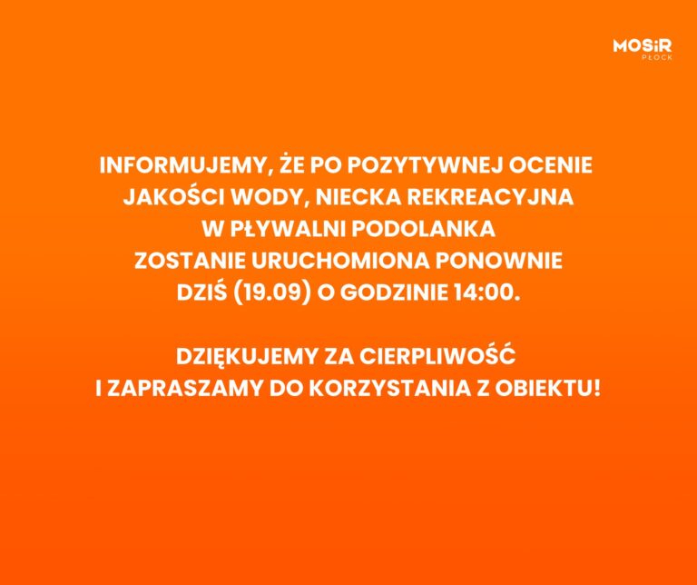 Z przyjemnością informujemy, że niecka rekreacyjna na Podolance jest ponownie czynna.