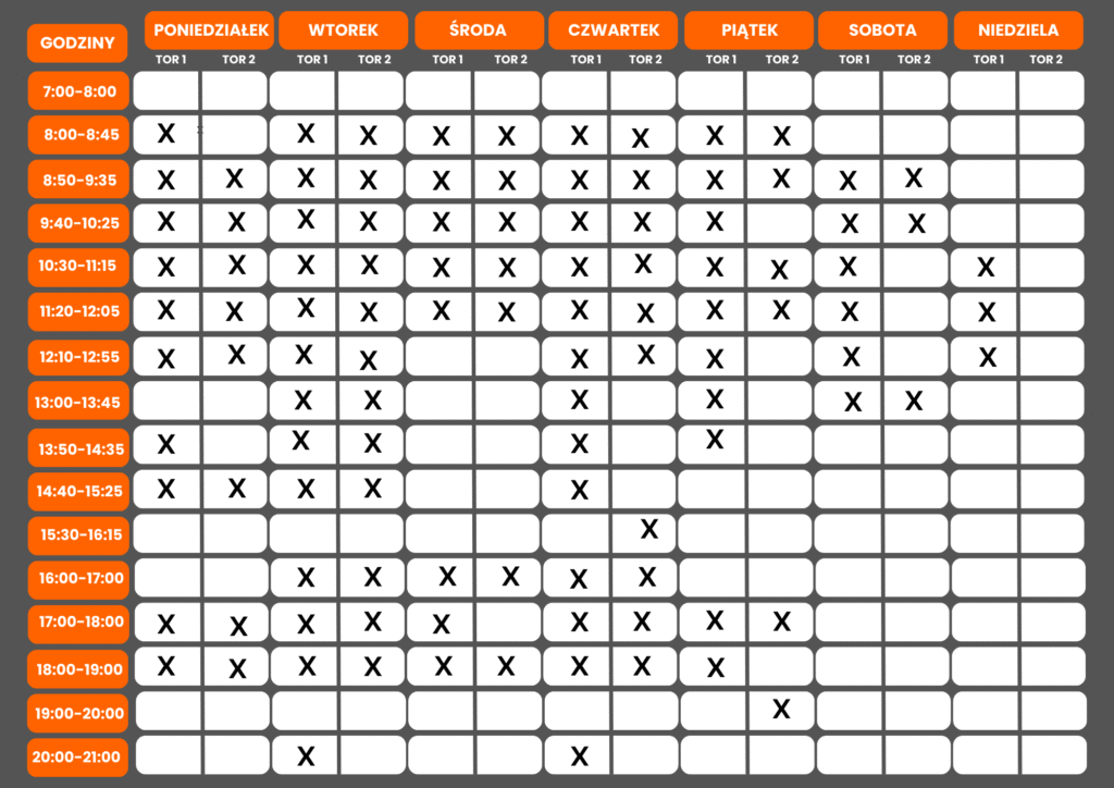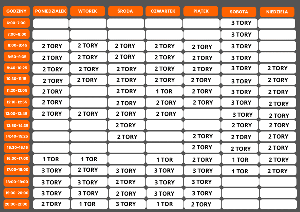 Harmonogram zajętości torów na niecce rekreacyjnej: