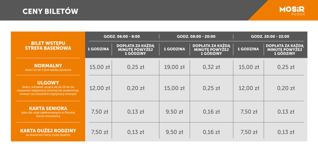 | sobota - niedziela (godz. 8:00 - 22:00) | 15,00 zł |