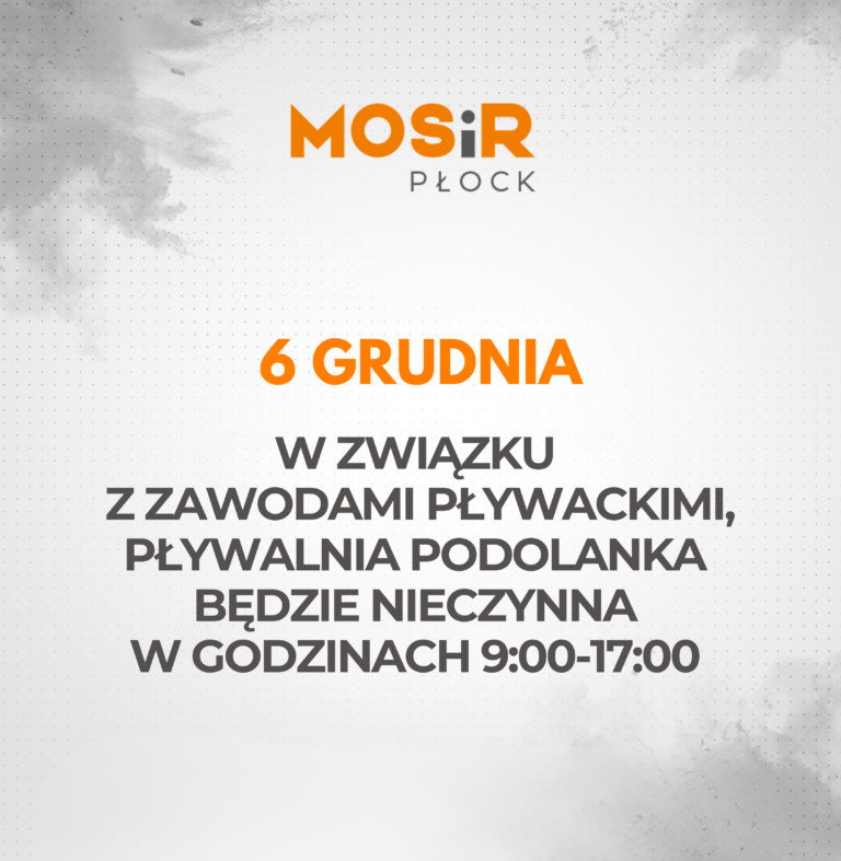 W związku z zawodami pływackimi w dniu 6 grudnia, Pływalnia Podolanka będzie nieczynna w godzinach 9:00-17:00.